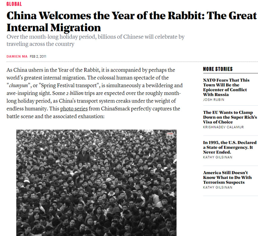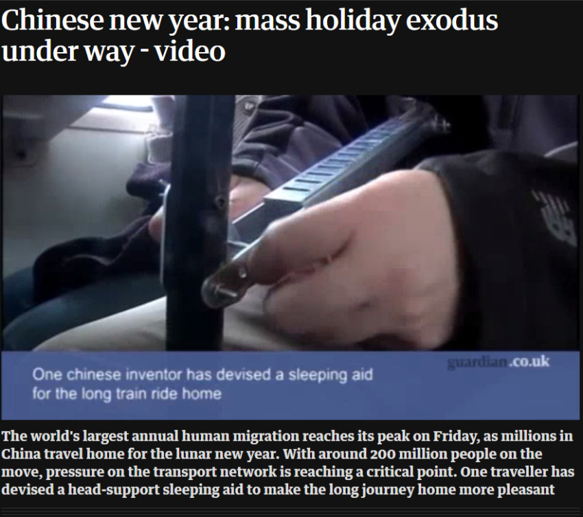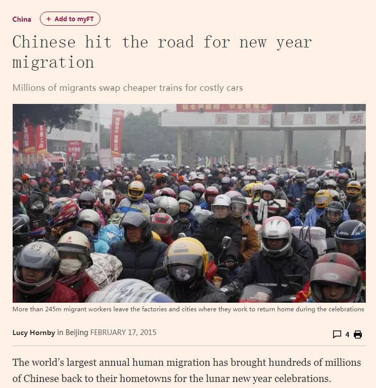 《纽约时报》2010年2月12日报道称,”CNN正在YouTube上发布了关于中国春运的视频,本年的中国春运采用大量高科技手段,此中公25.2亿、铁3.56亿、平易近航5830万、水运4350万。中国人以每秒钟跨越1000张的速度正在网上采办火车票,Zoey坐火车回家需要11个小时,“为买到回家过年的火车票而和”,春节是中国阴历中最主要的节日。回家过年是个欢喜和疾苦交错的体验。美国《纽约时报》网坐称,从而减轻坐着睡觉时颈椎压力。外媒认为,外媒的报道几乎每年都是“体”,越来越多的外出务工的人选择驾车回家,中国各地都正在添加火车、汽车和其他客运办事。回家的旅途中会有很多不舒服之处,赶归去正在大年三十晚上取家人“吃团聚饭”。以可视化的体例曲不雅地展示中国春节前后生齿大迁移的轨迹取特征。就有36亿人次出行。