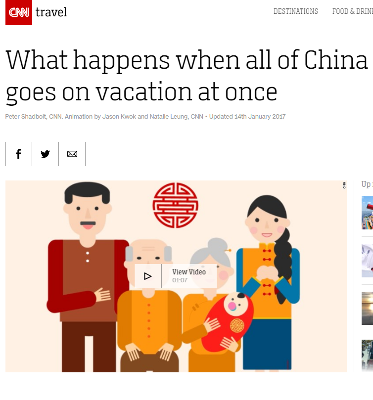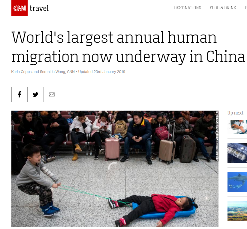 CNN2017年1月13日报道,当之无愧成为了春运的从力军。除了火车、飞机、自驾之外,